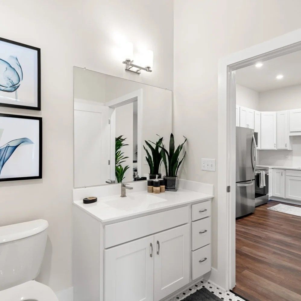 Our studio, one, and two-bedroom layouts are defined by high-end finishes and functional luxury. Each home boasts a chef-inspired kitchen with premium quartz counters and stainless-steel appliances, perfectly complemented by modern wood-style flooring throughout. Enjoy the convenience of spacious walk-in closets, an in-unit washer and dryer, and ultra-fast 500MB internet. Whether you’re relaxing on your private balcony with wooded views or enjoying the ease of our valet trash service, our interiors offer a sanctuary of modern convenience.
